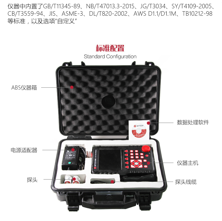 | 探傷標準 | 內(nèi)置各行業(yè)常用探傷標準,直接調(diào)用,方便、快捷 |