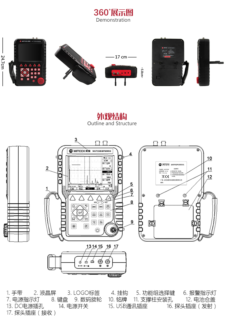 | 美泰超聲波探傷儀拎包長33cm、寬17cm、高21.5cm,可將探傷儀主機及配件置于拎包內(nèi),便于隨身攜帶。 | |