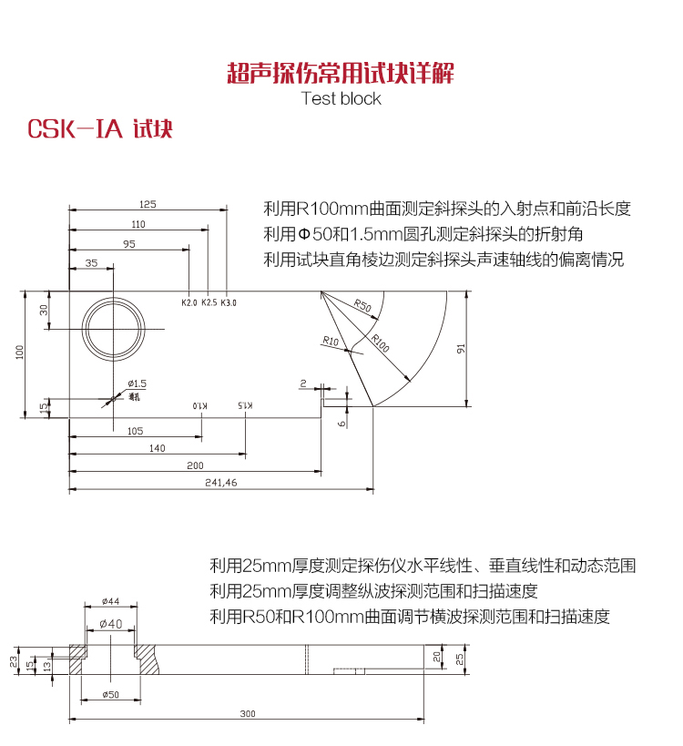 | 2.5P、Φ20、K2,各部件可拆卸,是進行斜射探傷用的探頭,主要用于橫波探傷。 | |