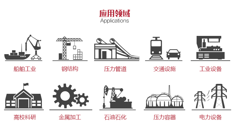 功能用途本儀器能夠廣泛地應用在制造業(yè)、鋼鐵冶金業(yè)、金屬加工業(yè)、化工業(yè)等需要缺陷檢測和質(zhì)量控制的領(lǐng)域,也廣泛應用于航空航天、鐵路交通、鍋爐壓力容器等領(lǐng)域的在役安全檢查與壽命評估。