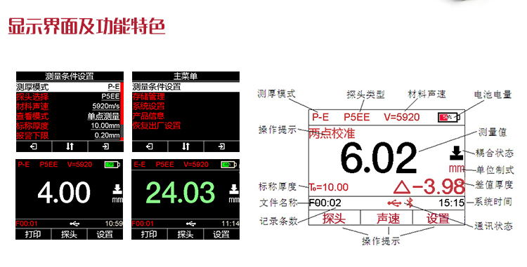 | 測(cè)厚模式 | 發(fā)射-回波模式(P-E)和回波-回波(E-E)模式 |