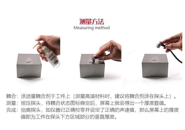 若被測體表面有大量耦合劑時,當探頭離開被測體表面時,耦合劑會引起誤測。因此測量結束時,應迅速將探頭移開被測體表面。