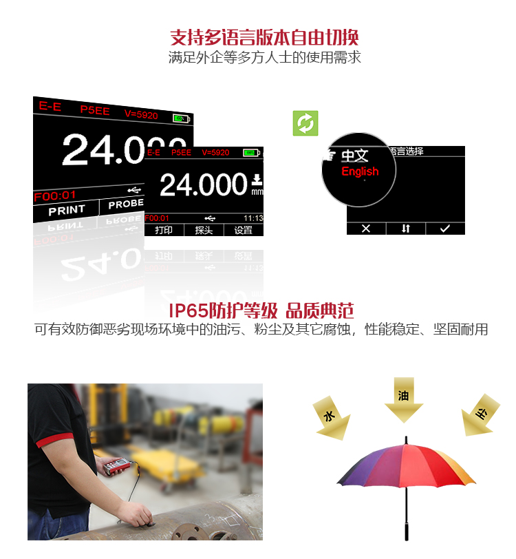| 分辨率 | 0.1mm/0.01mm/0.001mm可切換 |
