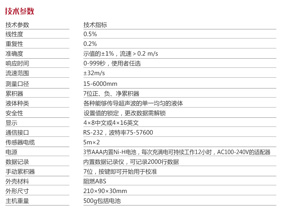 | 準(zhǔn)確度 | 示值的±1%,流速>0.2 m/s |
