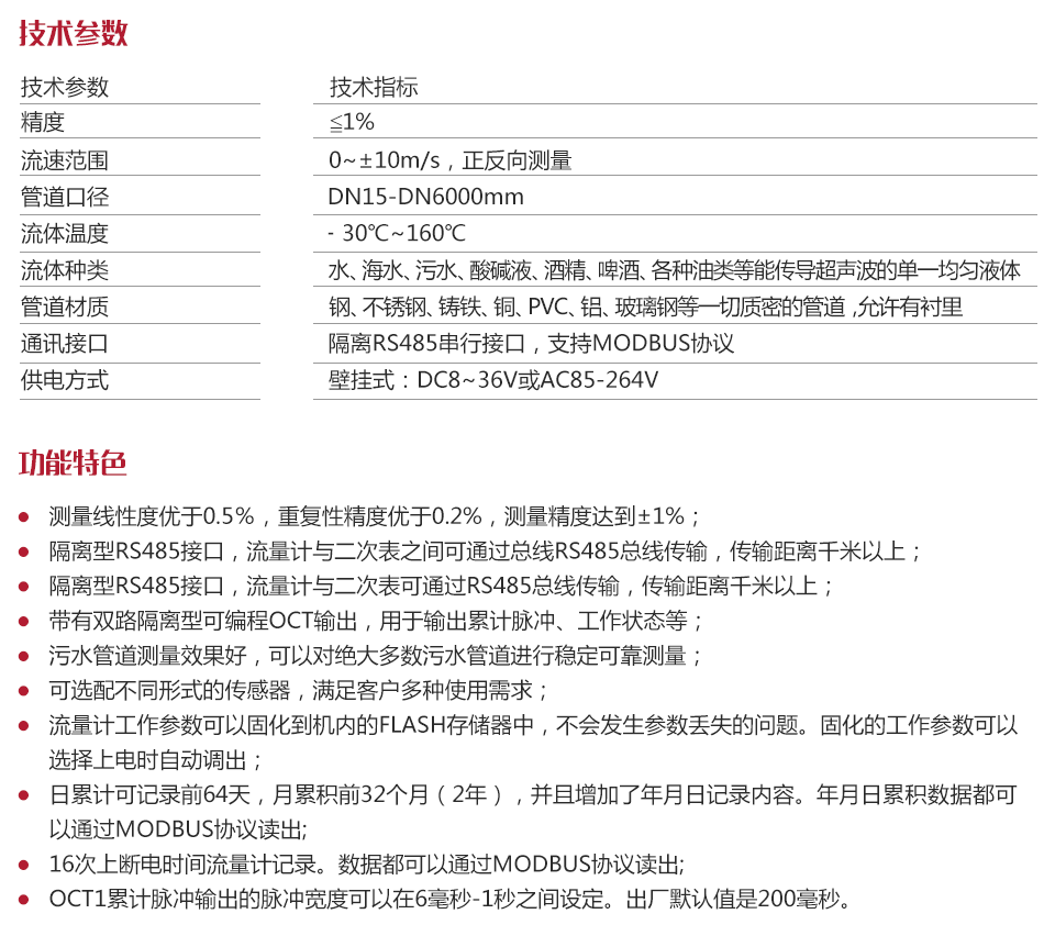 傳感器溫度:外夾式:﹣30℃~90℃;高溫外夾式、插入式、管段式:﹣30℃~160℃;