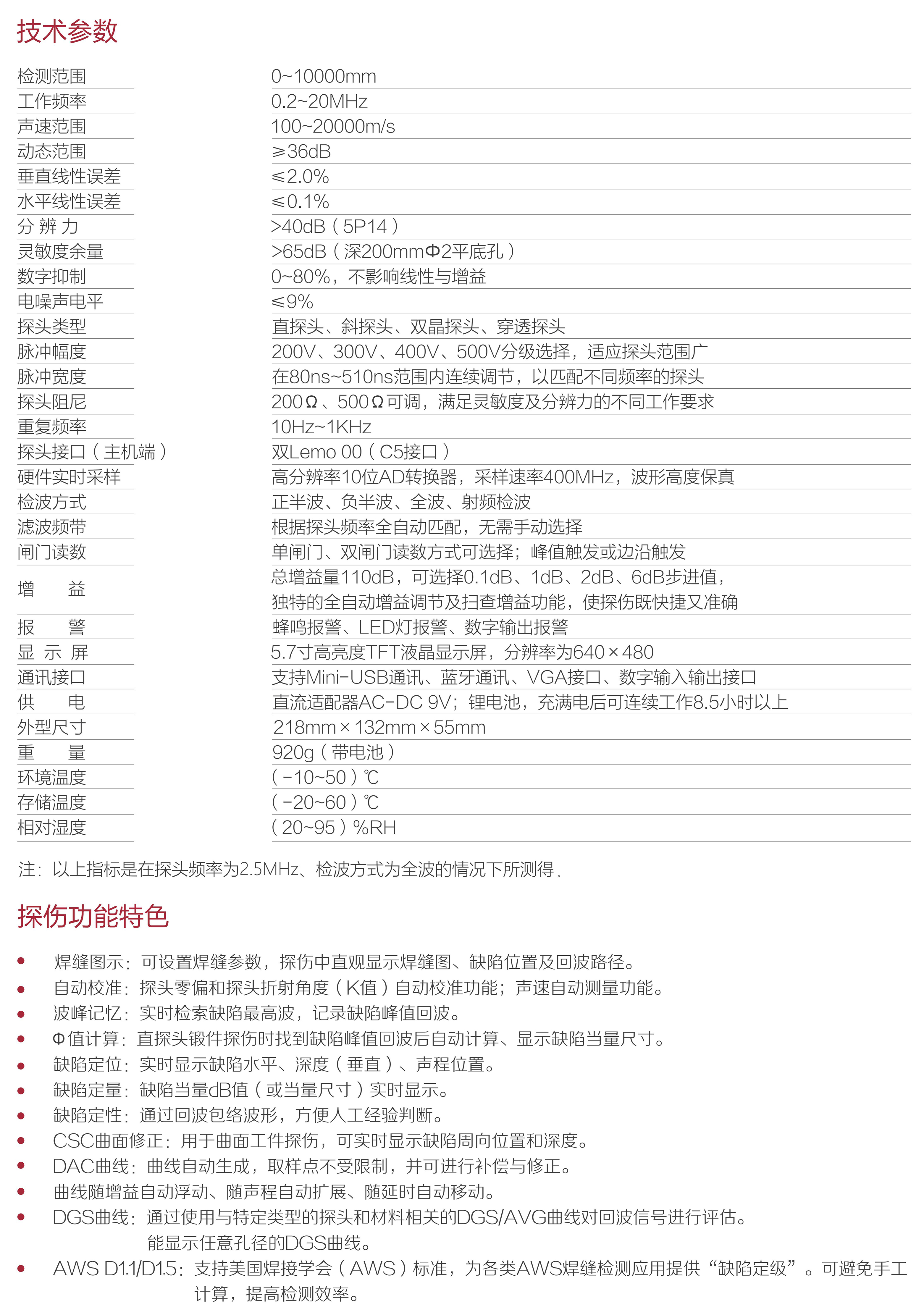 | 靈敏度余量 | >65dB(深200mmФ2平底孔) |