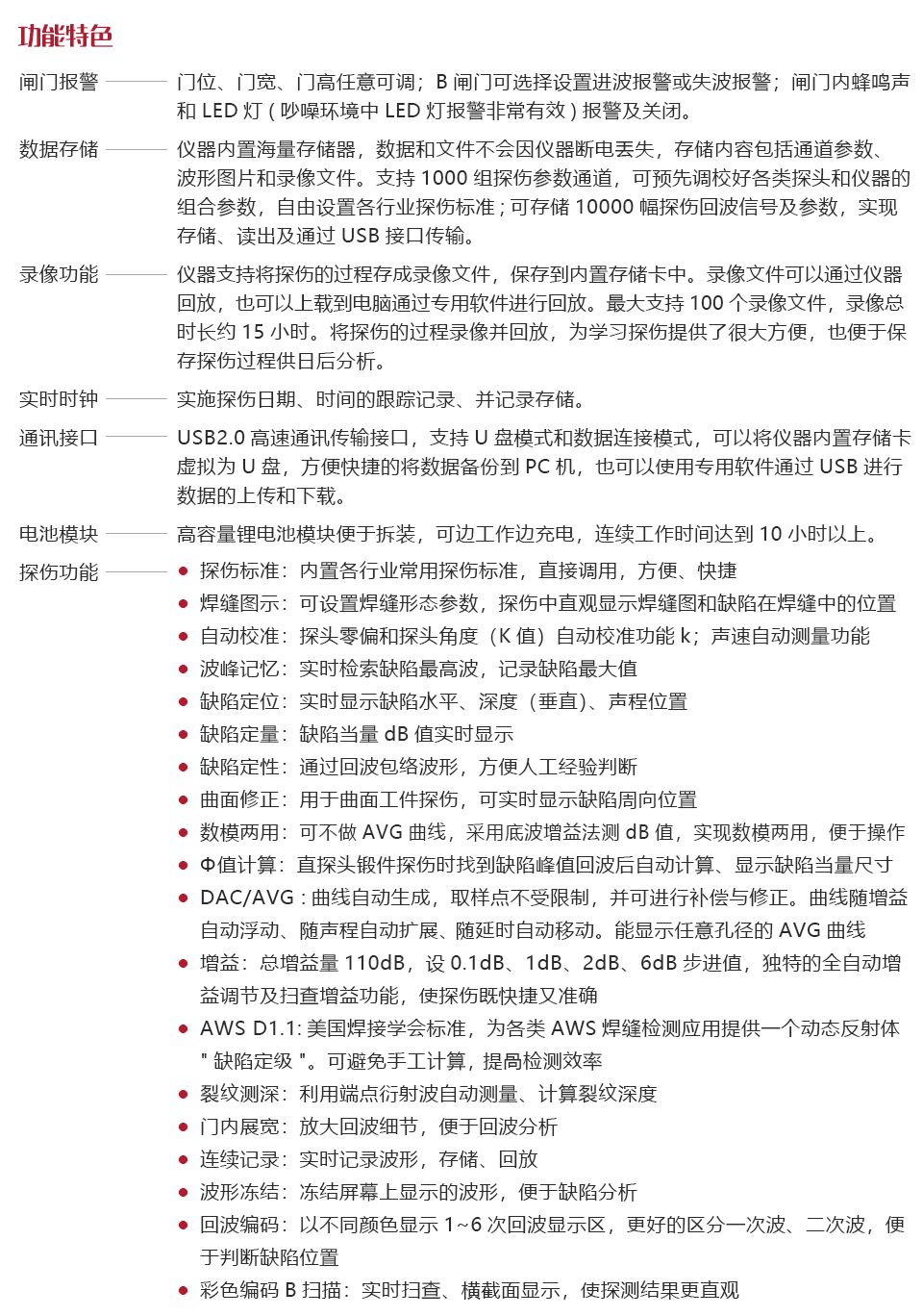 | 靈敏度余量 | >65dB(深200mmФ2平底孔) |