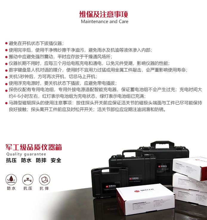 ?新型電源模式的應(yīng)用,使本產(chǎn)品不論在檢測(cè)缺陷的深度還是在檢測(cè)表面的靈敏度方面都得到了提升;
