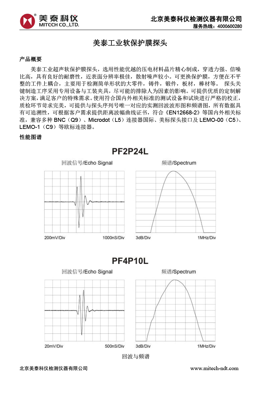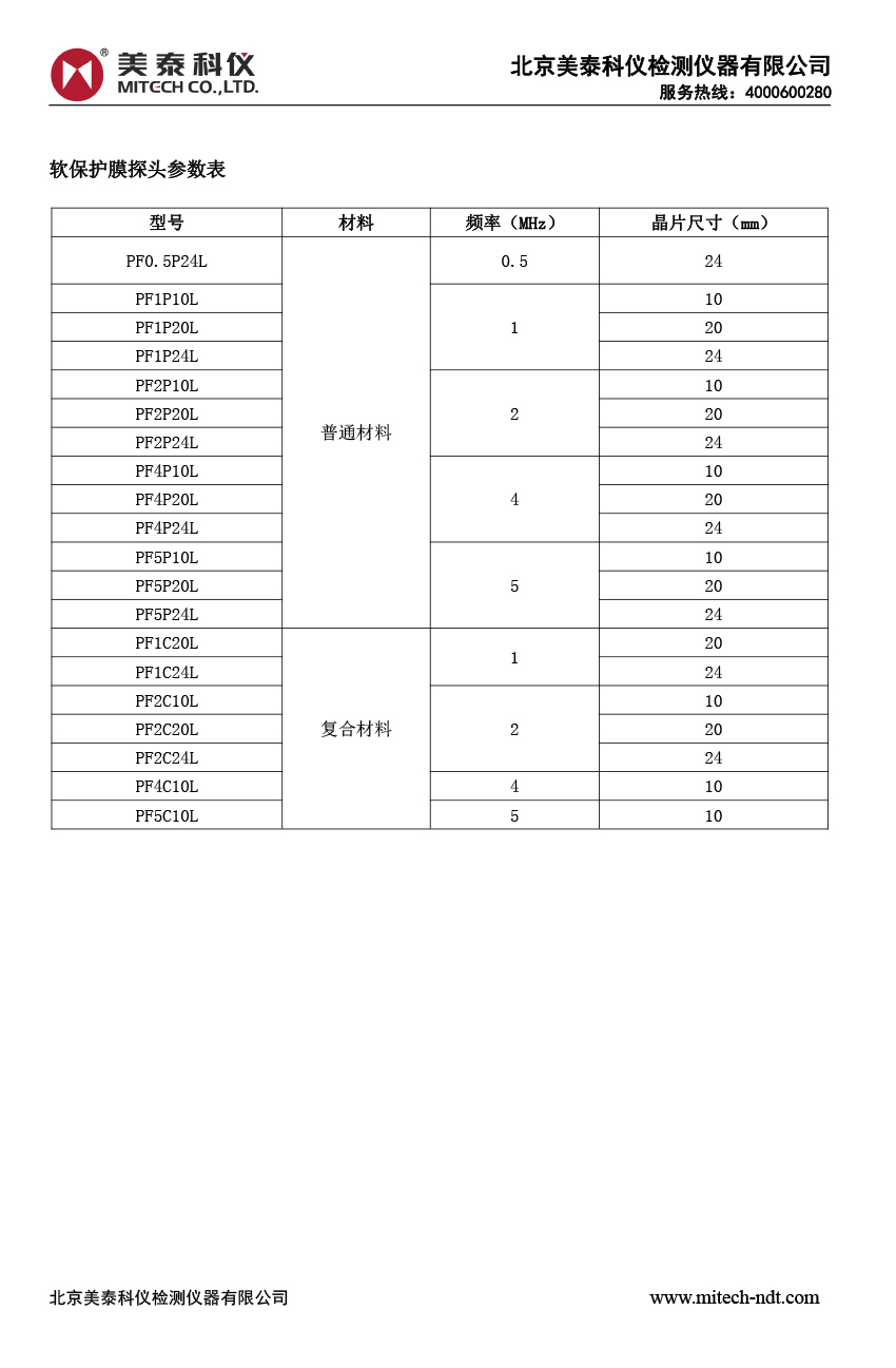 產(chǎn)品概述美泰工業(yè)超聲軟保護(hù)膜探頭,選用性能優(yōu)越的壓電材料晶片精心制成,穿透力強(qiáng)、信噪比高,具有良好的耐磨性,近表面分辨率極佳,散射噪聲較小。可更換保護(hù)膜,方便在不平整的工件上耦合,主要用于檢測(cè)簡(jiǎn)單形狀的大零件,鑄件,鍛件,板材,棒材等。 探頭關(guān)鍵制造工序采用專用設(shè)備與工裝夾具,盡可能的排除人為因素的影響??商峁﹥?yōu)質(zhì)的定制解決方案,滿足客戶的特殊需求。使用符合國(guó)內(nèi)外相關(guān)標(biāo)準(zhǔn)的測(cè)試設(shè)備和試塊進(jìn)行嚴(yán)格的校正,質(zhì)檢環(huán)節(jié)苛求完美,可提供與探頭序列號(hào)唯一對(duì)應(yīng)的實(shí)測(cè)回波波形圖和頻譜圖,所有數(shù)據(jù)具有可追溯性,可根據(jù)客戶需求提供距離波幅曲線證書,符合《EN12668-2》等國(guó)內(nèi)外相關(guān)標(biāo)準(zhǔn),兼容多種LEMO-00(C5)、LEMO-1(C9)連接器。