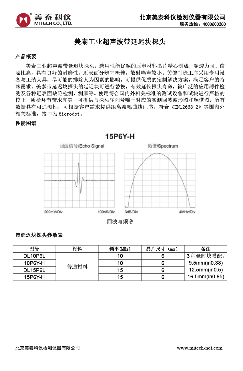 產(chǎn)品概述美泰工業(yè)超聲波帶延遲塊探頭,選用性能優(yōu)越的壓電材料晶片精心制成,穿透力強(qiáng)、信噪比高,具有良好的耐磨性,近表面分辨率極佳,散射噪聲較小。關(guān)鍵制造工序采用專用設(shè)備與工裝夾具,盡可能的排除人為因素的影響。可提供優(yōu)質(zhì)的定制解決方案,滿足客戶的特殊需求。美泰帶延遲塊探頭的延遲塊可進(jìn)行替換,有效延長探頭壽命,被廣泛的應(yīng)用薄件檢測及各種近表面缺陷檢測,測厚等。使用符合國內(nèi)外相關(guān)標(biāo)準(zhǔn)的測試設(shè)備和試塊進(jìn)行嚴(yán)格的校正,質(zhì)檢環(huán)節(jié)苛求完美,可提供與探頭序列號(hào)唯一對(duì)應(yīng)的實(shí)測回波波形圖和頻譜圖,所有數(shù)據(jù)具有可追溯性,可根據(jù)客戶需求提供距離波幅曲線證書,符合《EN12668-2》等國內(nèi)外相關(guān)標(biāo)準(zhǔn),接口為Microdot。