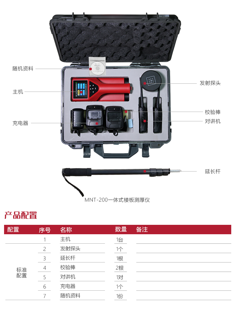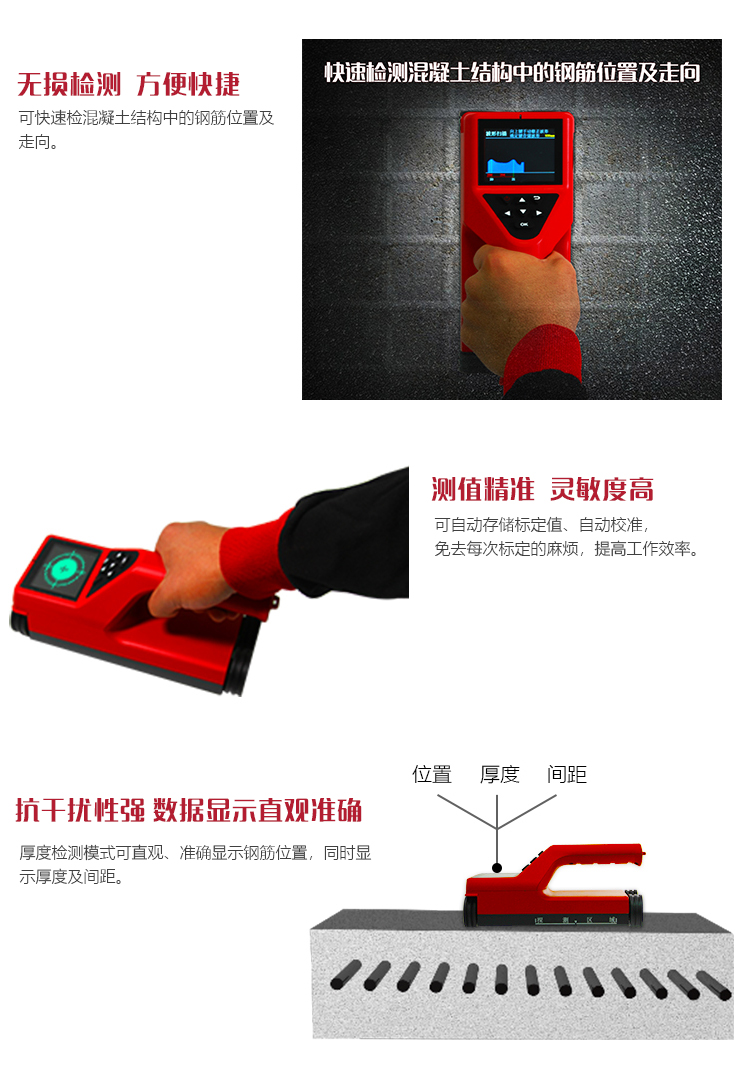產(chǎn)品概述美泰MNT-200一體化樓板測(cè)厚儀,基于電磁波幅值衰減的原理,可有效對(duì)混凝土等非鐵磁體介質(zhì)進(jìn)行無(wú)損厚度測(cè)量。其體積小、重量輕,一體化設(shè)計(jì)集成度更高,故障率低。使用時(shí),通過(guò)主機(jī)屏幕上的箭頭指示來(lái)確定主機(jī)移動(dòng)方向,對(duì)準(zhǔn)發(fā)射探頭時(shí),儀器會(huì)智能判讀樓板厚度。其測(cè)值速度快、測(cè)量精度高、性能穩(wěn)定可靠,被廣泛應(yīng)用于建筑施工質(zhì)量監(jiān)控檢測(cè)等領(lǐng)域,是保障生命財(cái)產(chǎn)安全必備的專(zhuān)業(yè)精密檢測(cè)儀器。