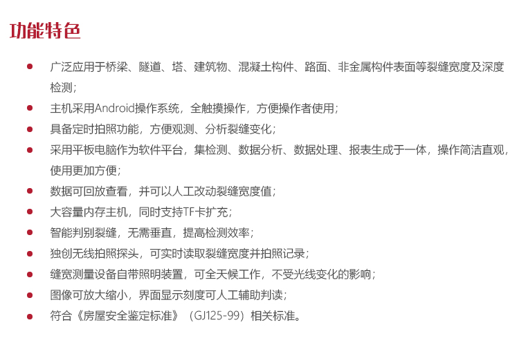 功能用途l 廣泛應(yīng)用于橋梁、隧道、塔、建筑物、混凝土構(gòu)件、路面、非金屬構(gòu)件表面等裂縫寬度及深度檢測;